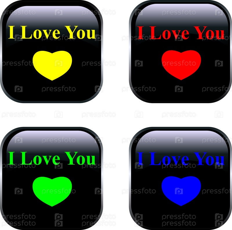 Черные кнопки с разноцветными сердцами и признаниями в любви