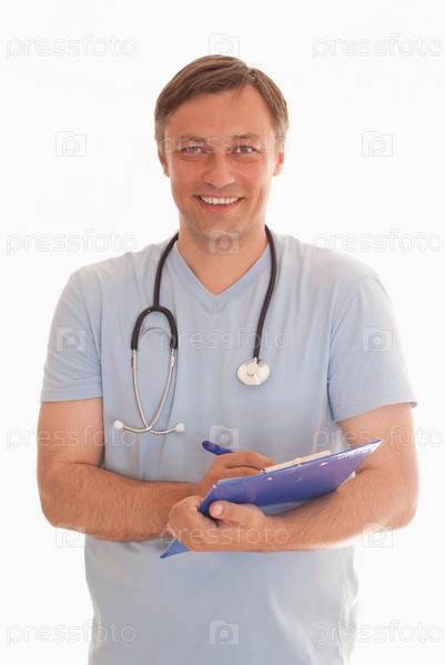 Мужчина-врач на белом фоне