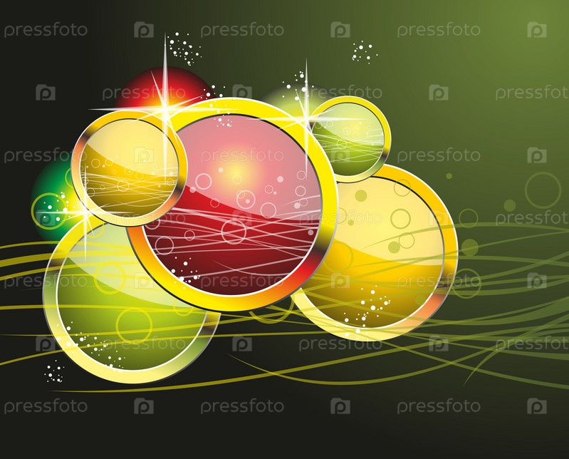 Красочные радужные круги на темно-зеленом фоне. Векторная иллюстрация