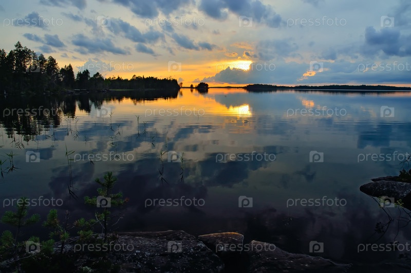 Белые ночи на озере Поньгома. Северная Карелия, Россия