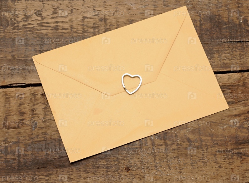 Конверт на деревянном фоне и сердце