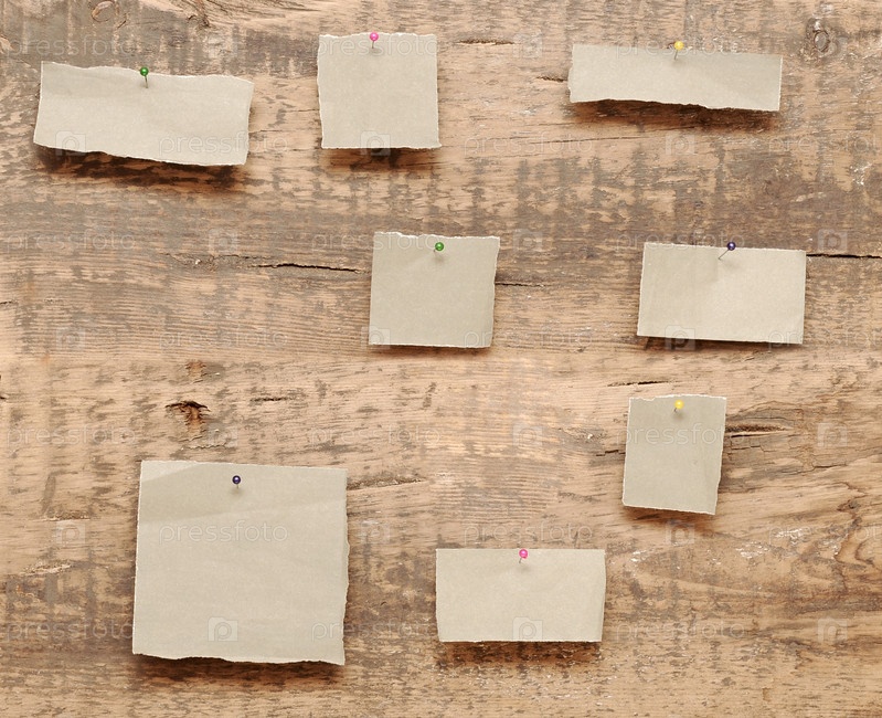 Кусочки бумаги,прикрепленные на деревянную поверхность