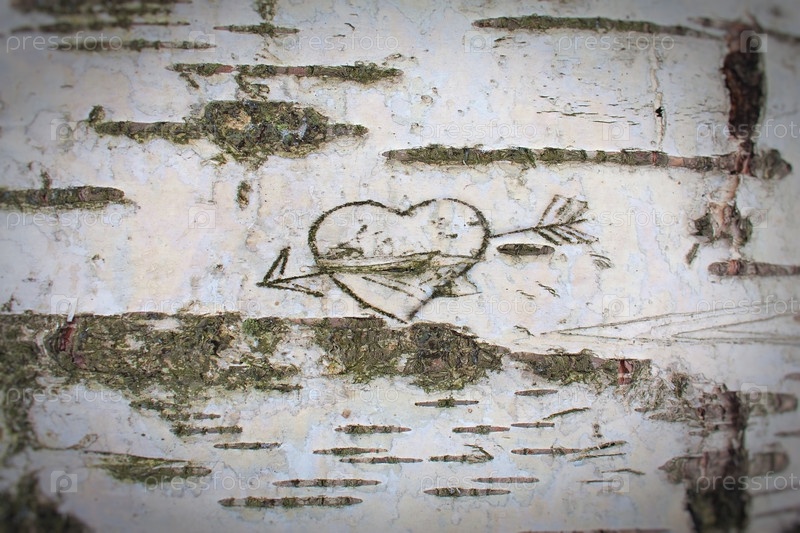 Сердце со стрелой на коре березы