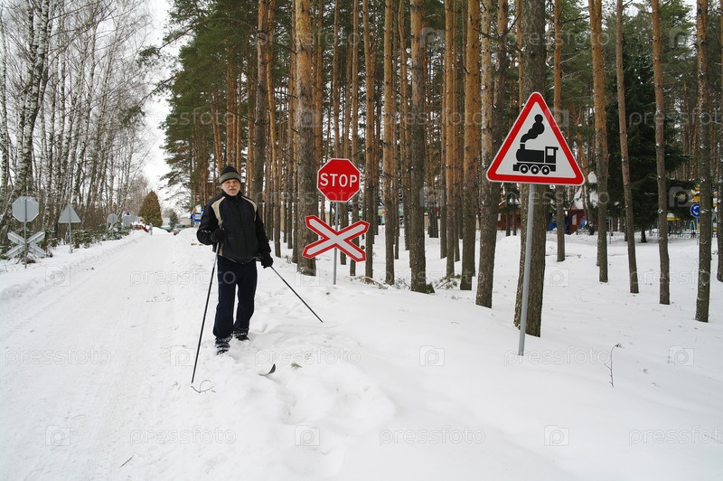 Портрет пожилого мужчины в спортивном костюме зимой в парке