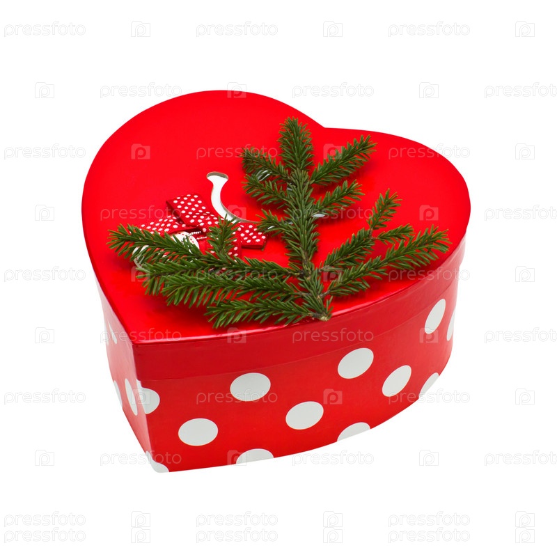 Яркая коробочка с еловой веткой
