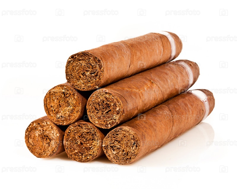 Шесть сигар на белом фоне
