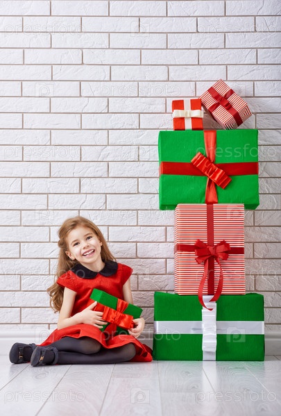 Маленькая девочка с рождественскими подарками