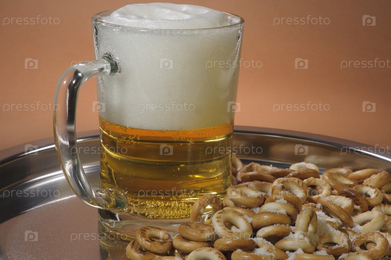 Кружка светлого пива с закуской
