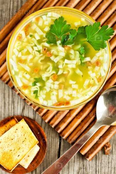 Суп- лапша на деревянном столе
