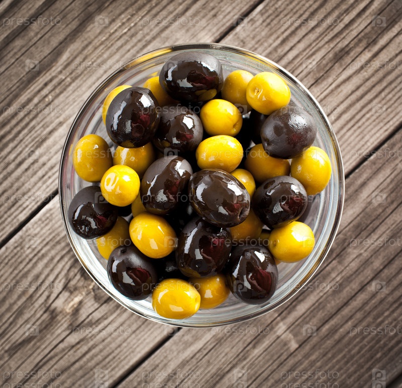 Оливки на деревянном столе