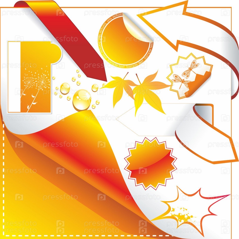 Стикер с различными изображениями на белом фоне