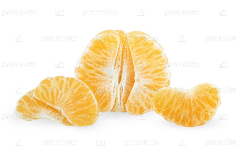Спелый очищенный мандарин, изолировано на белом