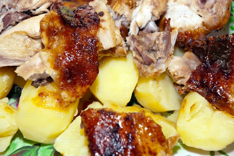 Жареная курица с картофелем крупным планом