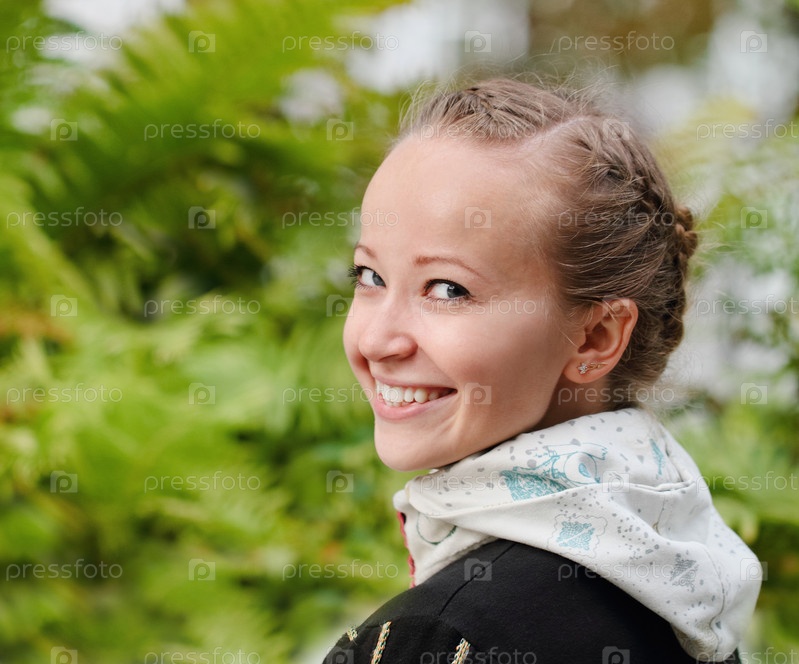 Молодая женщина блондинка улыбается в парке