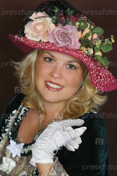 Красивая женщина в историческом костюме и шляпе