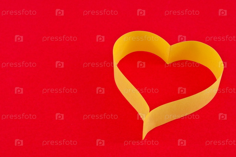 Бумажное сердце, символ Дня Святого Валентина, на красном фоне