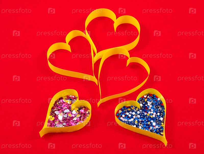 Бумажное сердце с блестками на красном фоне