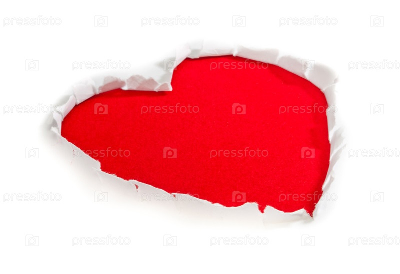 Красное бумажное сердце с рваными краями на белом фоне