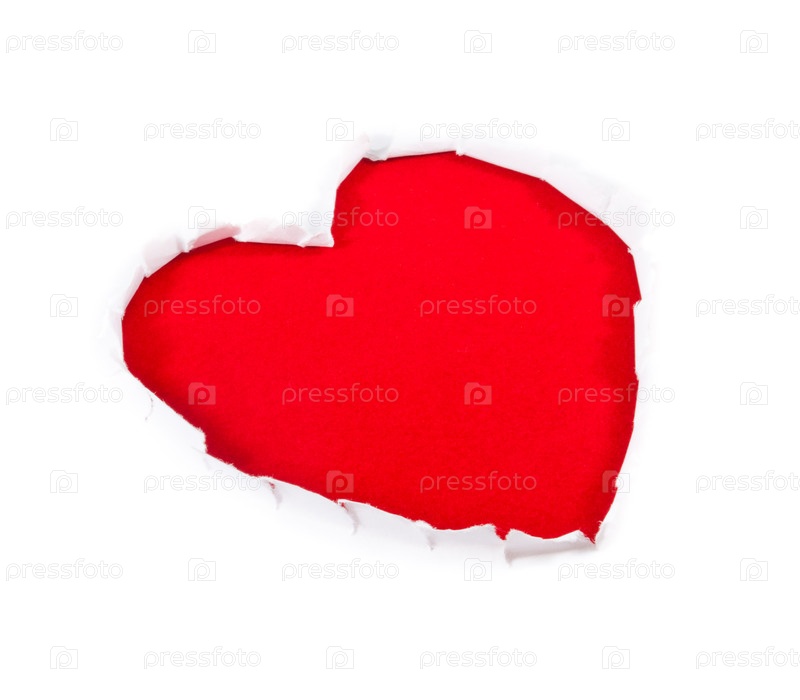Красное бумажное сердце с рваными краями на белом фоне