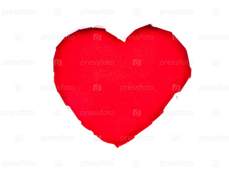 Красное бумажное сердце с рваными краями на белом фоне