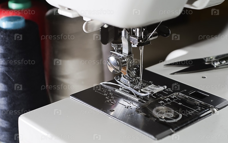 Механизм швейной машины. Игла и нить в катушке