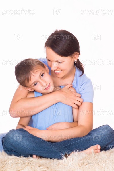 Счастливая мать обнимает сына и смотрит на него с нежностью