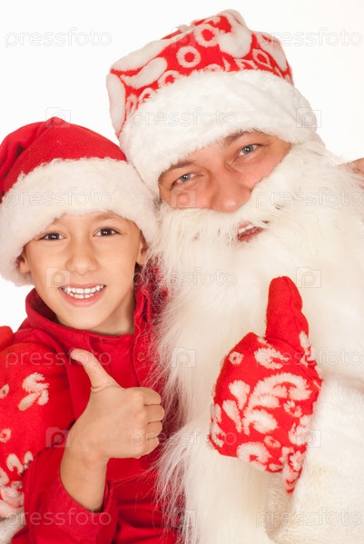 Санта-Клаус с ребенком, изолированный на белом фоне