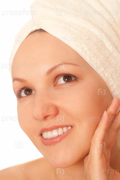 Красивая молодая женщина с полотенцем на голове