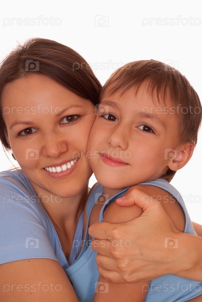 Счастливая мать обнимает сына