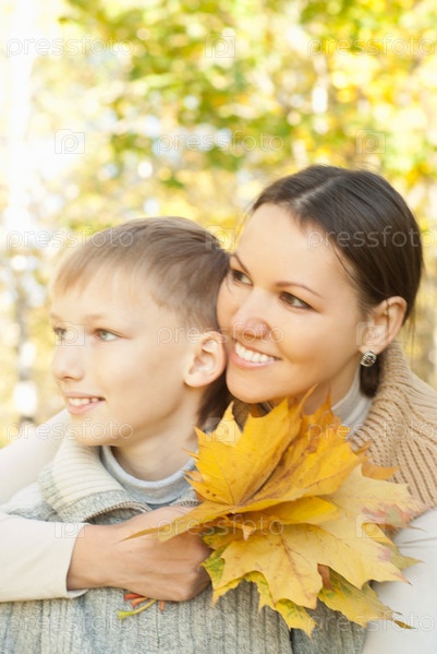 Мама и сын в осеннем парке