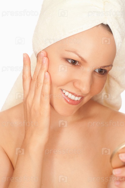Красивая молодая женщина с полотенцем на голове