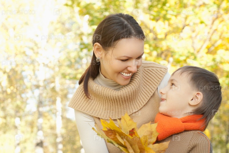 Мама и сын в осеннем парке