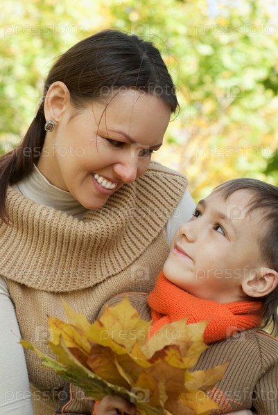 Мама и сын в осеннем парке