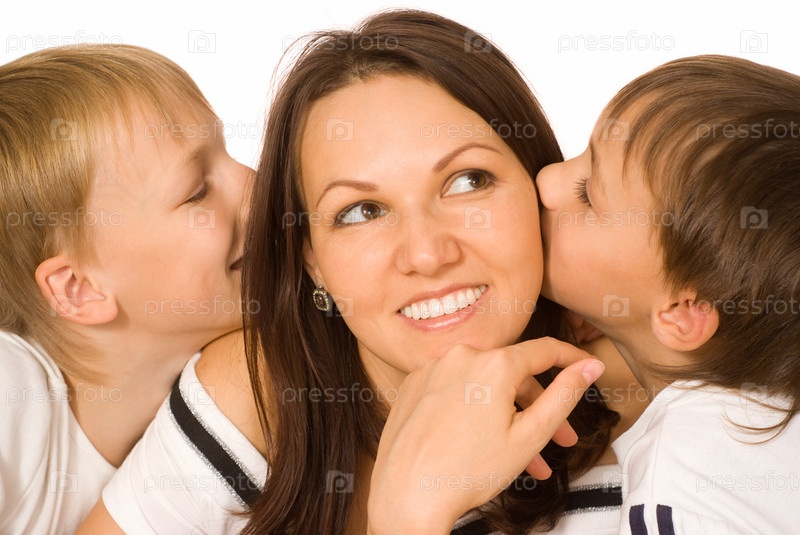 Счастливая мать с двумя своими мальчиками