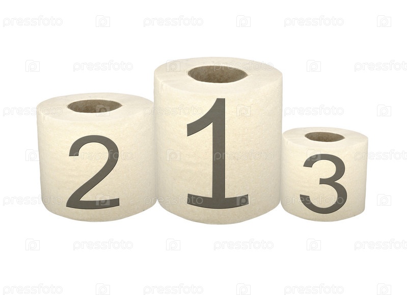 Пьедестал из трех рулонов туалетной бумаги на белом фоне