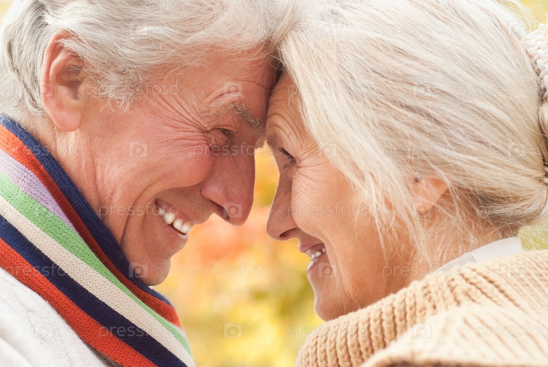 Счастливая пожилая пара в осеннем парке