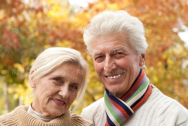 Красивая пожилая пара в осеннем парке