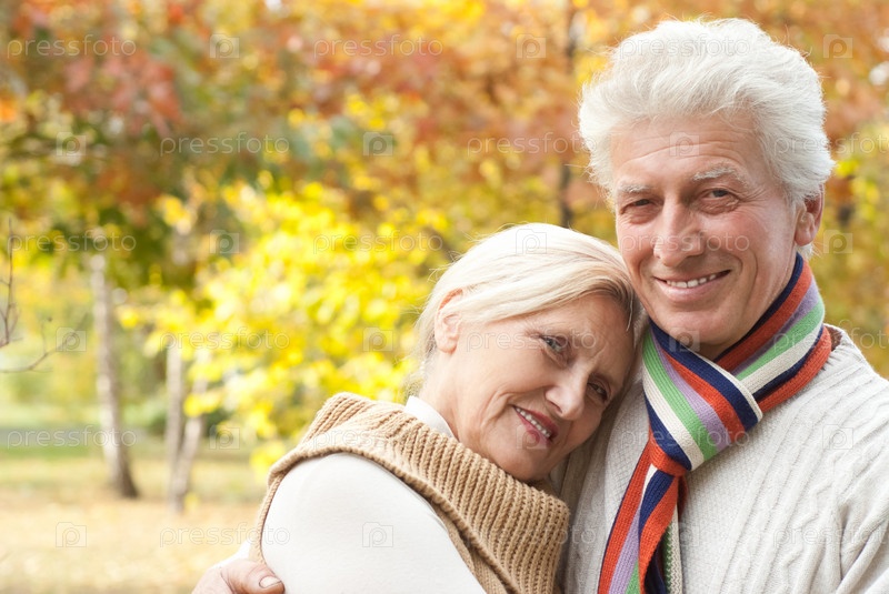 Портрет пожилой супружеской пары в осеннем парке