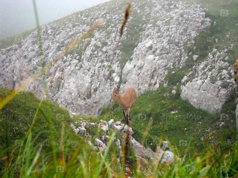 Дикое копытное животное в горной местности