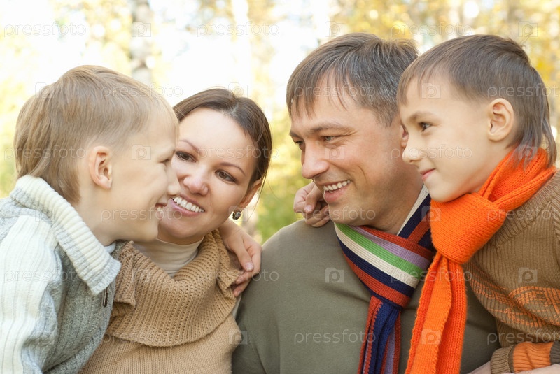 Счастливая семья в осеннем парке