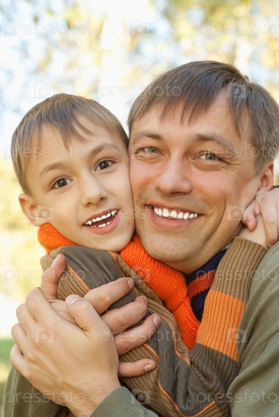 Отец с сыном в осеннем парке