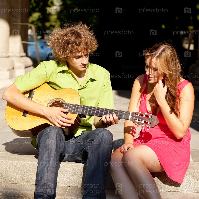 Юноша играет на гитаре для своей девушки