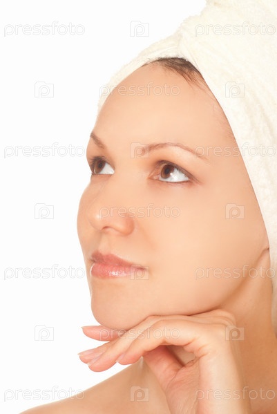 Красивая молодая женщина с полотенцем на голове