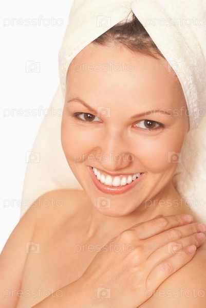 Красивая молодая женщина с полотенцем на голове