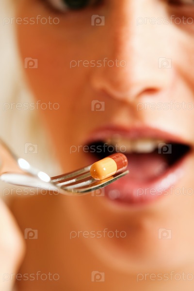 Женщина, кушающая таблетки
