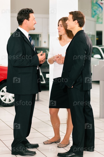 Молодая пара в автосалоне желает купить машину
