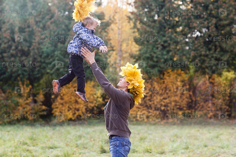 Отец и сын в осеннем парке