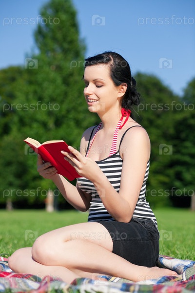 Девушка читает книгу в парке