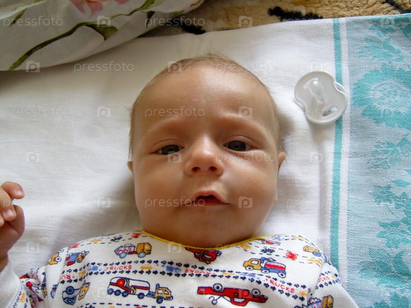 Младенец лежит на спине и смотрит в камеру