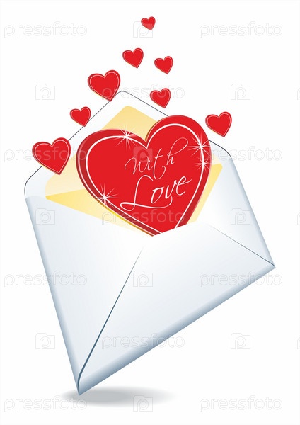Конверт с сердцами внутри, изолированный на белом фоне